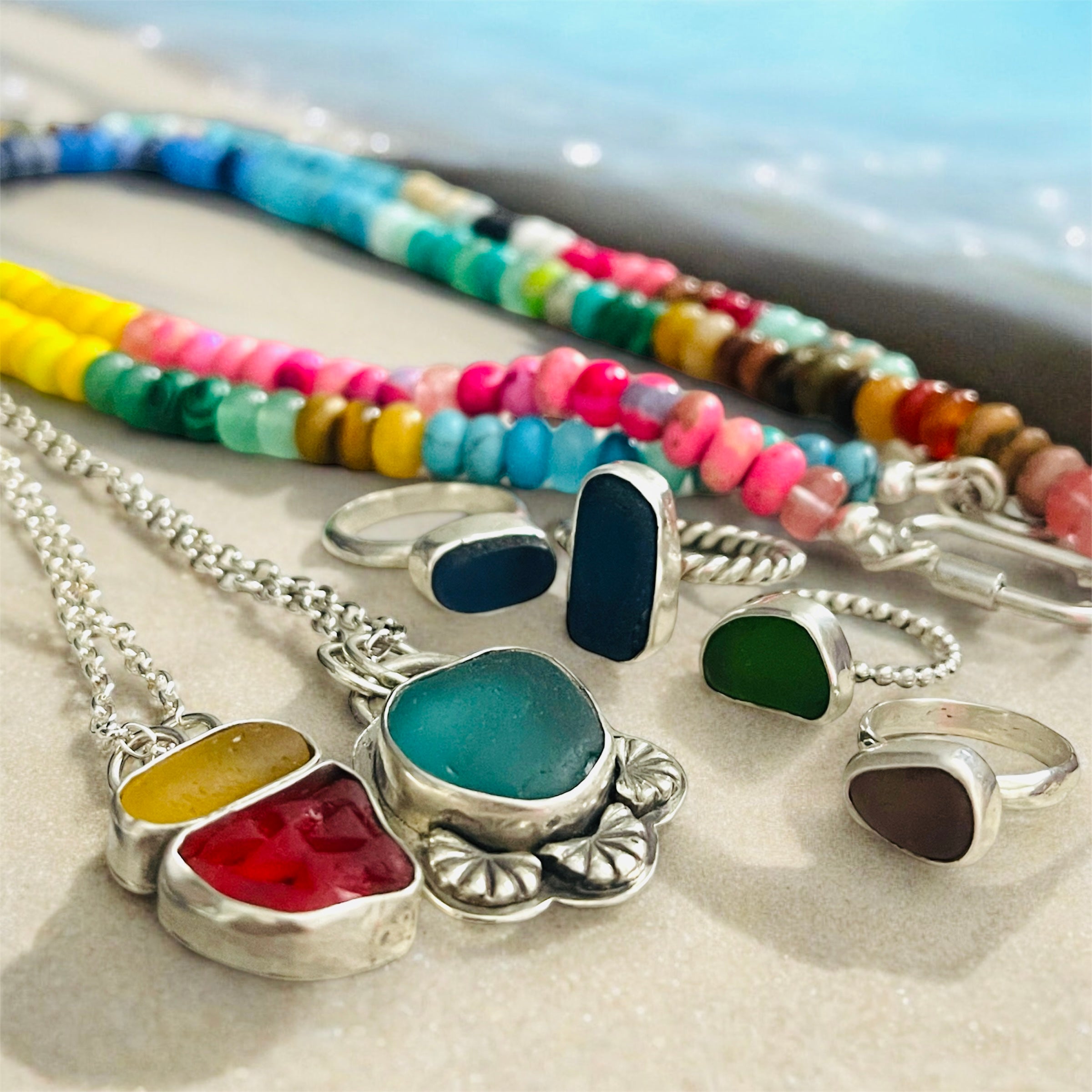 All jewellery is handcrafted by Anita, the Owner and Artisan, using Seaglass, Silver and Stones, making every creation unique and one-of-a-kind.