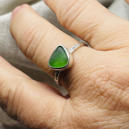 Seagreen Serenity: Genuine Sea Glass Ring - Size 9