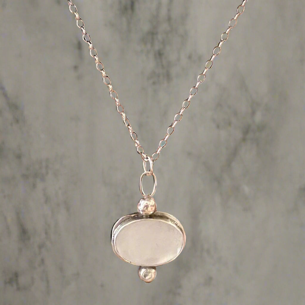 Timeless and elegant, this one-of-a-kind pendant features a luminous oval Mother of Pearl, bezel-set in sterling silver. Detailed silver embellishments add a refined touch, making this piece as classic as it is unique. The pendant hangs from a 45cm sterling silver chain – the perfect length for everyday wear or layering.